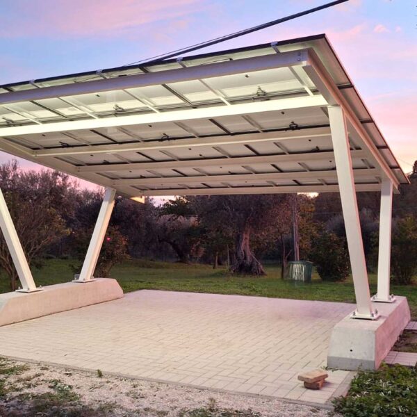Le coperture per auto fotovoltaiche CoverMet sono realizzate con tubolari in acciaio di qualità S275JR o S355JR a seconda della tipologia, scelti in base ai calcoli strutturali specifici per sostenere i pannelli solari.